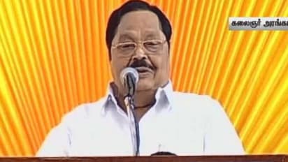 திமுக தலைவர் கருணாநிதி குறித்து துரைமுருகன் புகழராம் சூட்டியுள்ளார். பின்னர் பேசிய துரைமுருகன், கருணாநிதியுடனான நினைவுகளை பகிர்ந்துகொண்டார். பொது வாழ்வில் எப்படி வாழ வேண்டும் என்பதை எனக்கு திமுக தலைவர் கருணாநிதி கற்பித்தார். மேலும் சுய மரியாதையுடன் இருக்க வேண்டும் என்பார். எம்.ஜி.ஆர்.வுடன் நான் நெருக்கமாக இருந்தாலும் திமுக தலைவர் கருணாநிதியை பிரியவில்லை என்று துரைமுருகன் கூறியுள்ளார்.