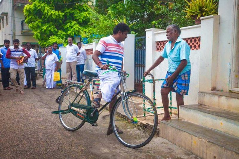 இளைஞர்களை சந்தித்தாள் தோள் மீது கை போட்டு பேசுவது , படிக்க உதவிகேட்டால் செய்வது என சகஜமாக இருந்து வருகிறார் . அவருக்கு பாதுகாப்பிற்காக எந்த போலீசாரும் உடன் செல்வதில்லை, இது என சொந்த ஊர் என்பதால் தனக்கு பாதுகாப்புக்கு போலீஸ் தேவையில்லையென அவர் மறுத்துவிடுகிறாராம். அதேபோல இன்று காலை அவர் டி-ஷர்ட் மற்றும் லுங்கி அணிந்து, சைக்கிளில் சென்று கிராமத்தினரை சந்தித்து நலம் விசாரிப்பது போன்ற புகைப்படங்கள் வெளியாகி உள்ளது குறிப்பிடதக்கது.