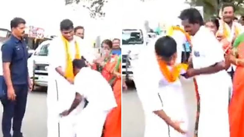 அப்போது, எதிர்பாராத விதமாக அந்த வாலிபர் அண்ணாமலையின் காலில் விழுந்தார். இதனை சற்றும் எதிர்பாராத அண்ணாமலை அவரை உடனே தூக்கிவிட்டு, பதிலுக்கு அந்த வாலிபரின் காலை அண்ணாமலை தொட்டு வணங்கினார். இது தொடர்பான புகைப்படம் வைரலாகி வருகிறது. இதனையடுத்து, சோளகர் சமூகத்தை சேர்ந்த மலைவாழ் மக்களான பூமிகா-வெள்ளையன் என்பவரது வீட்டில் மதிய உணவாக களி உணவு விரும்பி சாப்பிட்டுவிட்டு அண்ணாமலை அங்கிருந்து கிளப்பினார்.