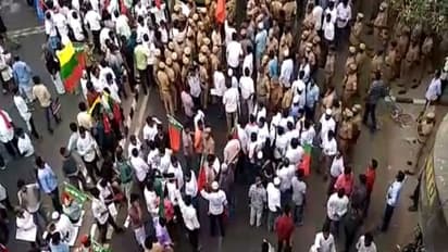 வேல்முருகன் தலைமையில் தலைமை செயலகத்தை முற்றுகையிட பேரணியாக சென்ற ஆயிரக்கணக்கான தமிழக வாழ்வுரிமை கூட்டமைப்பினர் கைது செய்யப்பட்டுள்ளனர்.