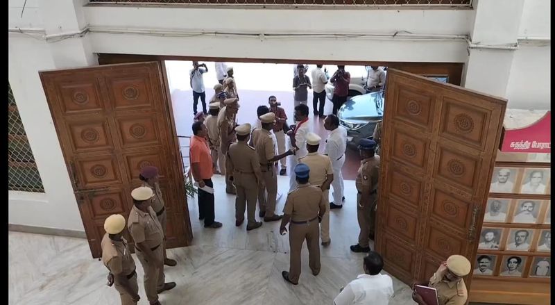 இரண்டு கார்களை மட்டும் போலீசார் அனுமதித்த நிலையில் தங்க தமிழ்ச்செல்வனின் காரை அனுமதிக்கவில்லை. பின்னர் உடனடியாக தனது உதவியாளரிடம் தனது காரில் உள்ள சென்று வேட்பு மனுவை எடுத்து வருமாறு கூறினார். அமைச்சர்களுடன் தங்க தமிழ்ச்செல்வன் வேட்பு மனுக்காக காத்திருந்த நிலையில்,தனது உதவியாளர்கள் இருசக்கர வாகனத்தில் சென்று வேட்பு மனுவை எடுத்து வந்தனர்.வந்த பின்னர் தேர்தல் நடத்தும் அலுவலரிடம் தனது வேட்பு மனுவை தாக்கல் செய்தார். இதனால் சிறிது நேரம் பரபரப்பு ஏற்பட்டது.