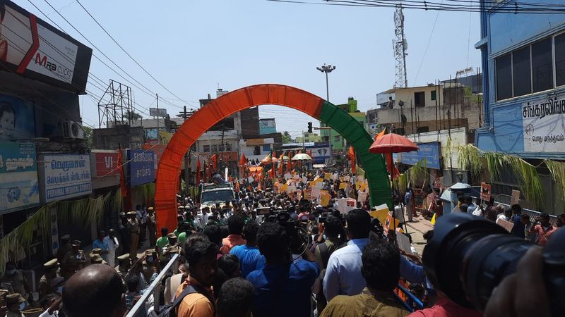 கன்னியாகுமரி சுசீந்திரத்தில் " வெற்றிக்கொடி ஏந்தி வெல்வோம்" என்ற பாஜக பிரச்சாரத்தை தொடங்கி வைத்து பொன் ராதாகிருஷ்ணனுக்கு ஆதரவாக வீடு வீடாக சென்று வாக்கு சேகரித்த அமித்ஷா இவ்வாறு கூறினார். மத்திய உள்துறை அமைச்சர் அமித் ஷா இன்று காலை நாகர்கோவில் வந்தார். காலை 10 மணிக்கு திருவனந்தபுரத்தில் இருந்து ஹெலிகாப்டர் மூலம் நாகர்கோவிலில் மறவன்குடியிருப்பு பகுதியில் உள்ள ஆயுதப்படை மைதானத்தில் அமைக்கப்பட்டுள்ள ஹெலிபேடில் வந்திறங்கிய அமித்ஷா, அங்கிருந்து சுசீந்திரம் கோவிலுக்கு சென்று சாமி தரிசனம் செய்தார். பின்னர் சுசீந்திரம் நகர மக்களிடம் வெற்றிக் கொடி ஏந்தி வெல்வோம் என்ற பேரணியை தொடங்கி வைத்து பாஜக கூட்டணிக்கு ஆதரவாக பிரச்சாரம் மேற்கொண்டார்.