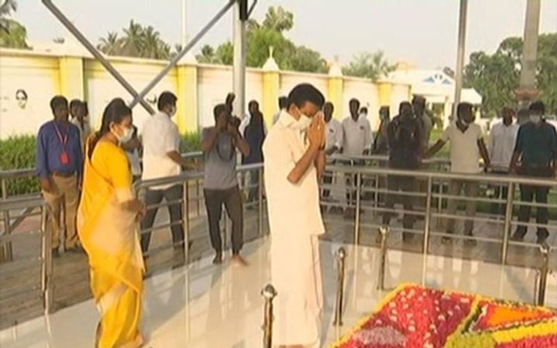 வாக்குப்பதிவிற்கு முன்னதாக மெரினாவில் உள்ள கலைஞர் கருணாநிதி நினைவிடத்தில் திமுக தலைவர் ஸ்டாலின் மற்றும் உதயநிதி ஸ்டாலின் ஆகியோர் மரியாதை செலுத்தினர்.