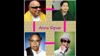 இந்த நான்கு மூலையிலும் தமிழ் நாட்டை ஆண்ட நான்கு முதல்வர்கள் இடம் பெற்று உள்ளனர்.அண்ணா சதுக்கம் என்ற பெயருக்கு ஏற்ப, தற்போது சதுக்கத்தின் நான்கு மூலையும் நிரம்பி விட்டது.