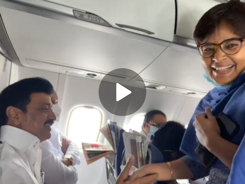 விமானத்தில் முதலமைச்சர் ஸ்டாலின் பயணித்துக்கொண்டிருந்த போது நடுவானில், பெண் ஒருவர் அவரிடம் நாடகம் நடித்து காட்டியுள்ள சம்பவம் பரபரப்பை ஏற்படுத்தி உள்ளது. அதற்கான வீடியோ சமூக வலைதளத்தில் வைரலாகி வருகிறது.