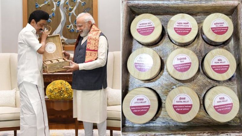 இந்நிலையில் பிரதமர் மோடியை தமிழ்நாடு முதலமைச்சர் மு.க.ஸ்டாலின் சந்தித்துள்ளார். அப்போது 44வது செஸ் ஒலிம்பியாட் போட்டியின் முக்கிய நிகழ்வுகள் குறித்த புத்தகத்தையும், தமிழ்நாட்டின் பாரம்பரிய சிறுதானியங்களையும் நெல் வகைகளையும் பிரதமருக்கு வழங்கினார் முதலமைச்சர் மு.க.ஸ்டாலின்.