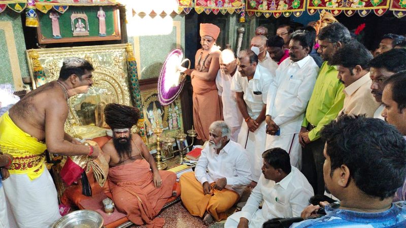 மயிலாடுதுறை மாவட்டம் திருக்கடையூர் அபிராமி அம்மன் ஆலயத்திற்கு இன்று காலை வருகை புரிந்த இந்து அறநிலையத்துறை அமைச்சர் பி.கே.சேகர்பாபு ஆலயத்தில் சுவாமி தரிசனம் செய்தார். அவருக்கு தருமபுரம் ஆதீனம் சார்பில் பூர்ண கும்ப மரியாதை அளிக்கப்பட்டது. தொடர்ந்து மயிலாடுதுறை அருகே உள்ள தருமபுரம் ஆதீனத்திற்கு வருகை தந்த அமைச்சர் ஆதீனத்தின் 27வது குருமகாசன்னிதானம் ஸ்ரீலஸ்ரீ மாசிலாமணி தேசிக ஞானசம்பந்த பரமாசாரிய சுவாமிகளை சந்தித்து பேசினார்.
