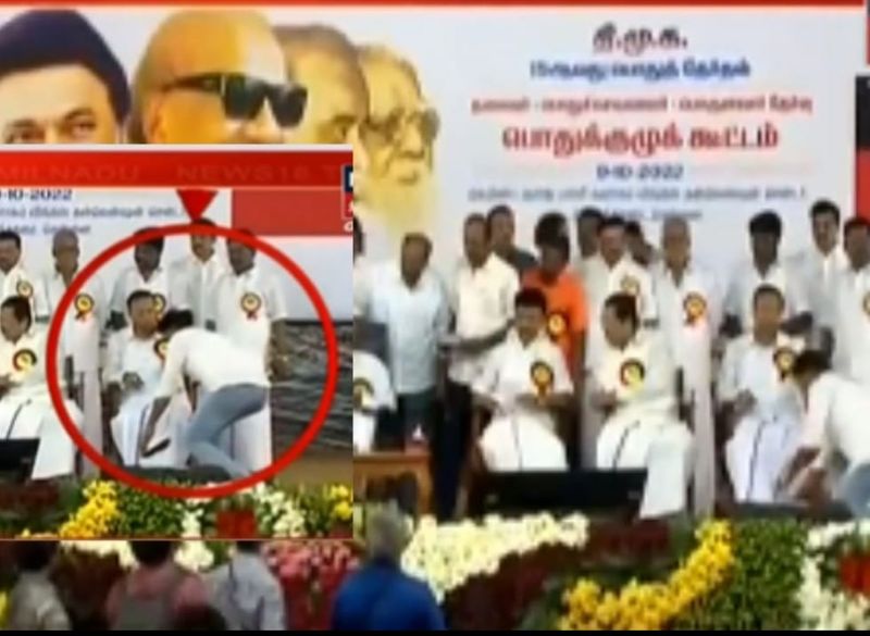 அப்போது தனது செருப்பை எடுத்து வரும்படி தொண்டர் ஒருவரிடம் அவர் கூற, அந்த தொண்டரும் பாலுவின் செருப்பை கையில் எடுத்துவந்து அவரின் காலடியில் வைத்தார். இந்த சம்பவம் தற்போது பெரும் சர்ச்சையை ஏற்படுத்தியுள்ளது. இதற்கான வீடியோ சமூக வலைதளத்தில் வேகமாக பரவி வருகிறது. இதுதான் சமூகநீதி ஆட்சியா, திராவிட மாடலா என பலரும் கழுவி ஊற்றி வருகின்றனர்.