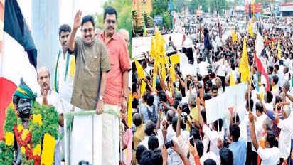 வழிநெடுகிலும், ஆயிரக்கணக்கான அவரது கட்சியினர் வரவேற்பு கொடுத்த வண்ணம் இருந்தனர். அவருக்கு மாலை அணிவித்தும், சால்வைகள் போர்த்தியும், மலர் தூவியும் வரவேற்பு அளித்தனர். இதனால் டி.டி.வி.தினகரனால் குறிப்பிட்ட நேரத்திற்கு அங்கு வரமுடியவில்லை.