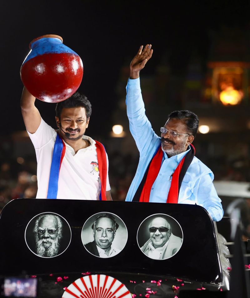 நாடாளுமன்ற தேர்தலையொட்டி பிரச்சாரம் தீவிரம் அடைந்துள்ளது. அந்த வகையில், சிதம்பரம் நாடாளுமன்ற தொகுதியில் போட்டியிடும் விசிக தலைவர் திருமாவளவனை ஆதரித்து தமிழக இளைஞர் நலன் மற்றும் விளையாட்டு துறை அமைச்சர் உதயநிதி ஸ்டாலின் அரியலூர் மாவட்டம் ஜெயங்கொண்டத்தில் பிரச்சாரம மேற்கொண்டார். அப்போது வாக்காளர்கள் மத்தியில் பேசிய உதயநிதி,