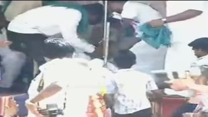 இதனால், மேடையில் இருந்த தலைவர்களும், பொதுமக்களும் அதிர்ச்சி அடைந்தனர். இதையடுத்து, மயங்கி விழுந்த வைகோவை, மேடையில் இருந்தவர்கள் ஆசுவாசப்படுத்தினர். சிறிது நேரத்துக்குப் பின்னர், வைகோ, மீண்டும் தனது பேச்சை துவங்கினார்.