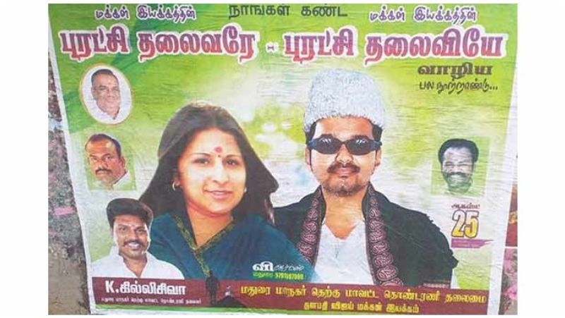 இதனை தொடர்ந்து ரசிகர் மன்றம் சார்பில் எந்தவித போஸ்டர் அடித்தாலும் அதனை தலைமைக்கு அனுப்பி ஒப்புதல் பெற்ற பிறகே ரசிகர்கள் ஒட்ட அனுமதிக்கப்பட்டனர். இந்த நிலையில் கடந்த சிலநாட்களுக்கு முன்னர் மதுரையில் நடிகர் விஜயை எம்ஜிஆர் போலும் அவரது மனைவி சங்கீதாவை ஜெயலலிதா போலும் சித்தரித்து போஸ்டர்கள் ஒட்டப்பட்டன. அதாவது நடிகர் விஜய் திரையுலகில் மட்டும் அல்ல அரசியல் களத்திலும் எம்ஜிஆர் போன்றவர் என்று அந்த போஸ்டரில் குறிப்பிடப்பட்டிருந்தது. அந்த போஸ்டர் காமெடியாக இருந்ததால் அது மீம்களாக சமூக வலைதளங்களில் வைரல் ஆனது.