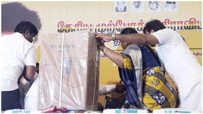 இந்நிலையில் கோயம்பேட்டில் உள்ள தேமுதிக அலுவலகத்தில் தொண்டர்களைச் சந்தித்த அவர் நலத்திட்ட உதவிகளை வழங்கினார். நீண்ட இடைவெளிக்குப் பிறகு விஜயகாந்த் கட்சி அலுவலகத்துக்கு வந்திருப்பது தொண்டர்களை உற்சாகமடைந்தனர். அதேவேளை பரிசு பொருட்களை எழுந்து நின்று கொடுக்க விஜயகாந்த் விடுப்பப்பட்டார். ஆனால், அவரது விருப்பத்தை கேட்காத பிரேமலதா விஜயகாந்தை உட்கார்ந்து கொண்டே கொடுக்க நிர்பந்தித்தார். அதனையும் மீறி விஜயகாந்த் எழுந்து நின்று பரிசு பொருட்களை கொடுக்க எழுந்தபோது பிரேலதா விஜயகாந்தை எதிர்பாராத விதமாக தள்ளி விட்டார்.