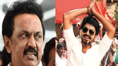 இந்த அறிவிப்பு ஸ்லைடை பார்த்து விஜய் ரசிகர்களுக்கு டபுள் கொண்டாட்டம், தி.மு.க.வினருக்கோ கடும் காட்டம். விஜய் படத்தின் பர்ஸ்ட் லுக் வெளியாவதில் தி.மு.க.வுக்கு என்ன காட்டம்! உதயநிதி அப்படியொன்னும் விஜய்க்கு போட்டியா வளர்ந்துடலையே?...என்று நீங்கள் கேட்கலாம். ஆனால் இது வேற விஷயம். ஃபர்ஸ்ட் லுக் போஸ்டர் மூலம் விஜய், ஸ்டாலினை வம்புக்கிழுத்திருப்பதுதான் விவகாரம். பல வருடங்களாக விஜய்யை ‘இளைய தளபதி’ எனும் பெயரோடுதான் விளித்துக் கொண்டிருந்தது சினிமா உலகம்.