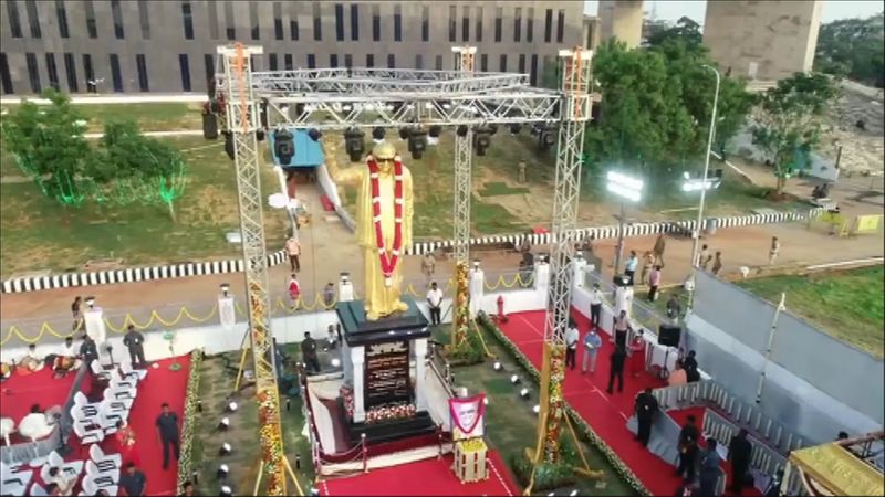இதனிடையே சிலையின் கீழ் அண்ணாவழியில் அயராது உழைப்போம், இந்தி திணிப்பை எதிர்ப்போம் உள்ளிட்ட 5 கட்டளைகள் இடம்பெற்றுள்ளன.