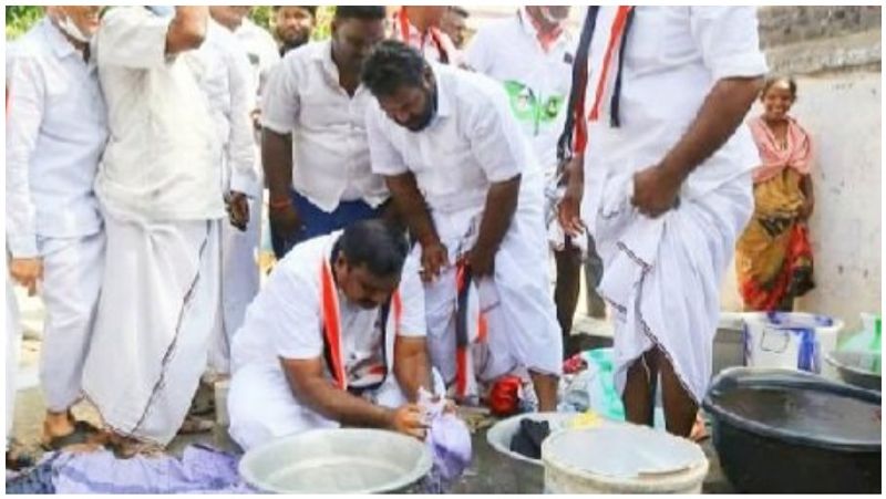அதேபோல், நாகப்பட்டினம் சட்டமன்றத் தொகுதியில் போட்டியிடும் அ.தி.மு.க வேட்பாளர் தங்க.கதிரவன் இன்று நாகூர் வண்டிப்பேட்டை பகுதியில் தீவிர வாக்குச் சேகரிப்பில் ஈடுபட்டார். அப்போது பெண்மணி ஒருவர் துணி துவைத்துக்கொண்டிருப்பதைப் பார்த்த வேட்பாளர், அவரை நகரச் சொல்லிவிட்டு அந்த இடத்தில் அமர்ந்தார். பின்பு, அங்கிருந்த துணியைத் துவைத்தவாறே இரட்டை இலைச் சின்னத்தில் வாக்கு அளிக்குமாறு மக்களிடம் வாக்குச் சேகரித்தார்.