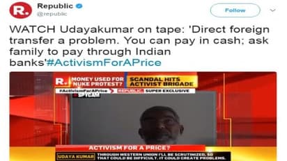 அணு உலைக்கு எதிராக போராட்டம் நடத்துவதற்கு உதயகுமார் வெளிநாடுகளில் இருந்து நிதி உதவி பெற்று வருகிறார் என்பதை மையக் கருத்தாகக் கொண்டு வீடியோ ஒன்றை ரிபப்ளிக் தொலைக்காட்சி நேற்று வெளியிட்டது. அதில் மாணவி போல வரும் பெண் ஒருவர், வெளிநாடுகளில் இருக்கும் தனது நண்பர்கள், உங்களது போராட்டத்திற்கு நிதி உதவி அளிக்க விரும்புகின்றனர் என்று கூறுகிறார். இதற்கு உதயகுமாரும் சிலவற்ற விவரிக்கிறார். இப்படியாக விரிகிறது அந்த வீடியோ.