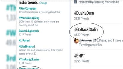 ஸ்டாலின் லண்டனில் இருந்து நாடு திரும்புவதை ஒட்டி பாஜக மற்றும் வலதுசாரி ஆதரவாளர்கள் #GoBackStalin (திரும்பிப்போ ஸ்டாலின்) என்ற ஹேஷ்டேக்கை ட்விட்டரில் ட்ரெண்ட் செய்தனர்