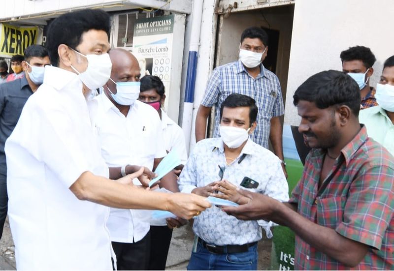 இந்நிலையில் சென்னை தலைமைச் செயலகத்தில் இருந்து அவரது இல்லத்திற்கு செல்லும் வழியில் அண்ணாசாலையில் தனது வாகனத்தில் இருந்து இறங்கிய முதலமைச்சர் ஸ்டாலின், அப்போதும் அங்கு முகக்கவசம் அணியாமல் இருந்தவர்களுக்கு ஏன் நீங்கள் முகக்கவசம் அணியவில்லை.? என கேட்டதுடன் அவர்களுக்கு முகக் கவசங்களை வழங்கி, கட்டாயமாக முகக்கவசம் அணிய வேண்டும் என கேட்டுக் கொண்டார். அங்கிருந்த இளைஞர்கள் மற்றும் சிறுவர் சிறுமியர்களுக்கு அவர் தான் வைத்திருந்த முகக்கவசத்தை அணிவித்து அறிவுரை வழங்கினார். கொரோனா வைரஸ் வேகமாக பரவி வரும் நிலையில் யாரும் முகக் கவசம் அணியாமல் வெளியில் வர வேண்டாம் என்று கேட்டுக்கொண்டார். மேலும் அண்ணா சாலை பகுதியில் நடந்து சென்று பொது மக்களுக்கு முகக்கவசங்களை வழங்கி விட்டு பின்னர் இல்லத்திற்கு சென்றார். முதலமைச்சரே சாலையில் இறங்கி முகக் கவசம் அணிய வேண்டும் என பொதுமக்களுக்கு வலியுறுத்தியது அங்கிருந்தவர்களுக்கு ஆச்சர்யத்தை ஏற்படுத்தியது. அதற்கான வீடியோ, புகைப்படங்கள் சமூக வலைதளத்தில் வைரலாகி வருகிறது.