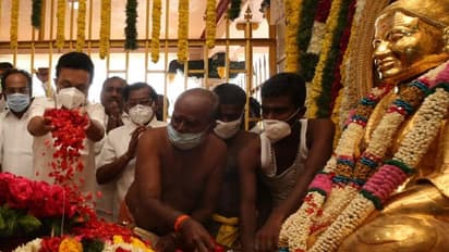 திமுக தலைவரும் தமிழகச் சட்டப்பேரவை எதிர்க்கட்சித் தலைவருமான மு.க.ஸ்டாலின் அவர்கள் பசும்பொன் முத்துராமலிங்கத் தேவரின் 113-வது ஜெயந்தி விழா மற்றும் 58-வது குருபூஜை ஆகியவற்றை முன்னிட்டு மதுரை கோரிப்பாளையத்தில் உள்ள பசும்பொன் முத்துராமலிங்கத் தேவர் அவர்களின் திருவுருவச் சிலைக்கு மாலை அணிவித்து மரியாதை செலுத்தினார்.