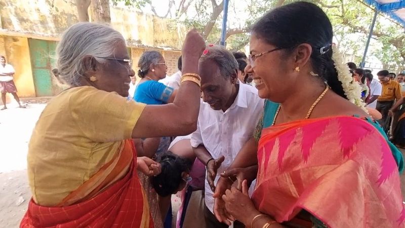 பதிலுக்கு ஆசிரியர்களும் எல்லா வளமும் பெற்று வாழ்க வாழ்க பல நூறு ஆண்டு என்ற பாடலை பாடி அவர்களை மலர் தூவி வாழ்த்தினார்கள்.இந்த நிகழ்வு பார்ப்பவர்களை நெகிழ வைத்தது. மேலும் இதுகுறித்து முன்னாள் மாணவர்கள் கூறும் பொழுது, கடந்த 20 ஆண்டுகாலம் ஆசிரியராக பணியாற்றி இருந்தாலும் அப்போதெல்லாம் கிடைக்காத சந்தோஷம் இந்த முன்னாள் மாணவர் சந்திப்பு நிகழ்ச்சியில் கிடைக்கிறது. உடல்நிலை சரியில்லாத போனாலும் மருத்துவர் இல்லாமலே இந்த நிகழ்ச்சி பார்க்கும்போது உடல்நிலை சரியானதாக தெரிவித்தார்.