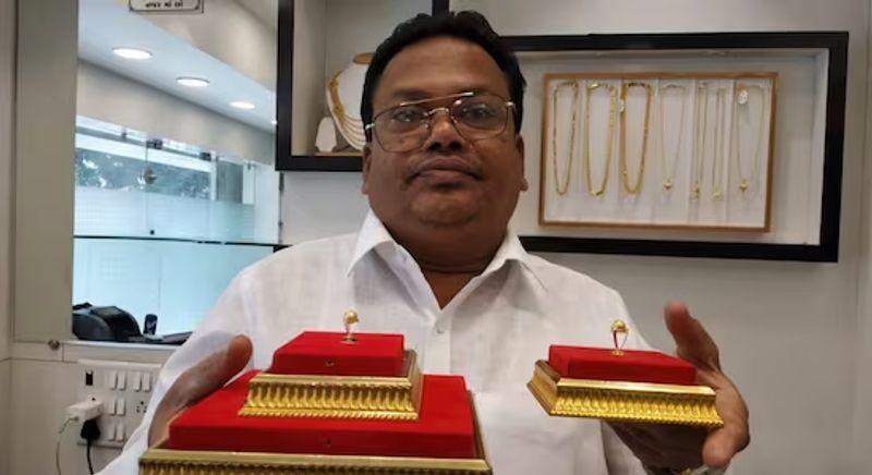 அதோடு கோல்டன் டிக்கெட் பெற்ற அமிதாப் பச்சன், ரஜினிகாந்த், சச்சின் டெண்டுல்கர் ஆகியோரும் இந்த போட்டியில் சிறப்பு விருந்தினராக கலந்து கொள்ள இருக்கின்றனர். இந்த நிலையில் தான் அகமதாபாத்தைச் சேர்ந்த நகைக்கடை விற்பனையாளர் ரவூப் ஷேக், வெறும் 0.9 கிராம் எடையுள்ள உலகின் மிகச் சிறிய தங்க உலகக் கோப்பை கோப்பையை வடிவமைத்துள்ளார். மூன்றாவது முறையாக, அகமதாபாத்தில் உள்ள நகைக்கடைக்காரர் ஒருவர் தங்க உலகக் கோப்பை கோப்பையை வடிவமைத்துள்ளார். இந்த உலகக் கோப்பையின் எடை 0.9 கிராம் மற்றும் ஒன்றரை சென்டிமீட்டர் உயரம் கொண்டது.