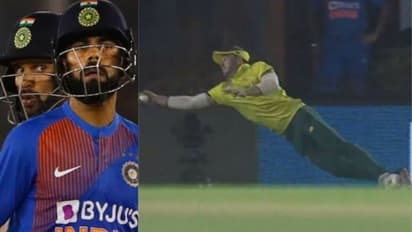 இந்தியா - தென்னாப்பிரிக்கா இடையேயான இரண்டாவது டி20 போட்டியில் 2 அபாரமான கேட்ச்சுகள் பிடிக்கப்பட்டன. ஒன்று விராட் கோலி பிடித்த கேட்ச். மற்றொன்று டேவிட் மில்லர் பிடித்த கேட்ச். மில்லர் பிடித்த கேட்ச்சை கோலியும் தவானும் வியந்து பார்த்த வீடியோ வைரலாகிவருகிறது.