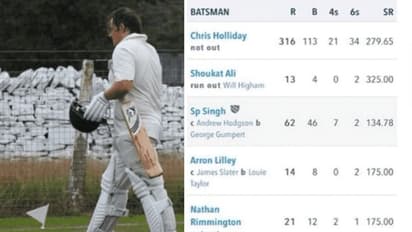 இங்கிலாந்தில் கிளப் போட்டிகளும் நடந்துவருகின்றன. இந்நிலையில், ஹாய்லேண்ட்ஸ்வைன் மற்றும் டென்பி கிரிக்கெட் கிளப் ஆகிய 2 கிளப் அணிகளுக்கு இடையே நடந்த போட்டியில், ஹாய்லேண்ட்ஸ்வைன் அணியின் டாப் ஆர்டர் பேட்ஸ்மேன் கிறிஸ் ஹாலிடே, வரலாற்று சிறப்புமிக்க இன்னிங்ஸை ஆடினார். இந்த போட்டியில் காட்டடி அடித்த ஹாலிடே, 21 பவுண்டரிகள் மற்றும் 34 சிக்ஸர்களுடன் 316 ரன்களை குவித்தார்.