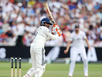 இங்கிலாந்துக்கு எதிரான 3வது டெஸ்ட் போட்டியின் 5வது மற்றும் கடைசி நாள் ஆட்டத்தில் 193 ரன்கள் இலக்கை நோக்கி பேட்டிங் செய்யும் இந்திய அணிக்கு தொடக்கமே அதிர்ச்சி காத்திருந்தது. காயத்துடன் தடுமாறி பேட்டிங் செய்த ரிஷப் பண்ட் 9 ரன்னில் ஆர்ச்சர் பந்தில் போல்டானார். இந்திய அணி 81/5 என்ற நிலையில் உள்ளது. கே.எல்.ராகுல் (39), ஜடேஜா (6) களத்தில் உள்ளனர். இந்தியா வெற்றிக்கு 112 ரன்கள் தேவைப்படுகிறது.
