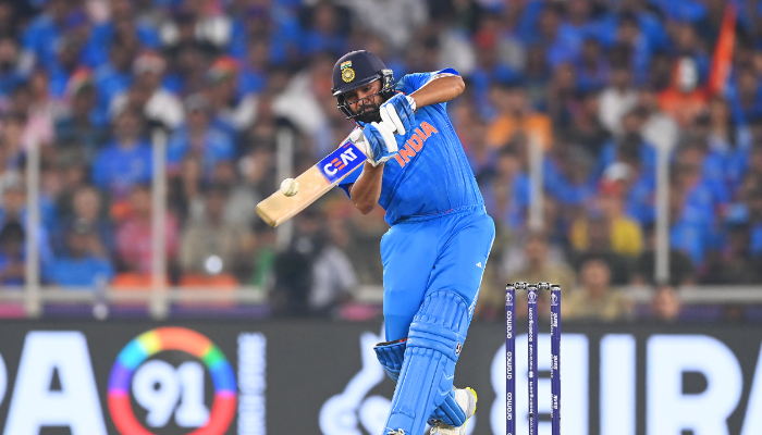 தொடர்ந்து விளையாடிய ரோகித் சர்மா உலகக் கோப்பை கிரிக்கெட்டில் தனது 4ஆவது அரைசதத்தை பதிவு செய்தார். மேலும், இது அவரது 53ஆவது ஒரு நாள் போட்டி அரைசதம் ஆகும். அதன் பிறகு அதனை அப்படியே சதமாக மாற்றுவார் என்று எதிர்பார்க்கப்பட்ட நிலையில், அவர் 86 ரன்களில் ஆட்டமிழந்தார். ரோகித் சர்மா, 63 பண்டுகளில் 6 பவுண்டரி மற்றும் 6 சிக்ஸர்கள் உள்பட 83 ரன்கள் குவித்து ஆட்டமிழந்தார்.