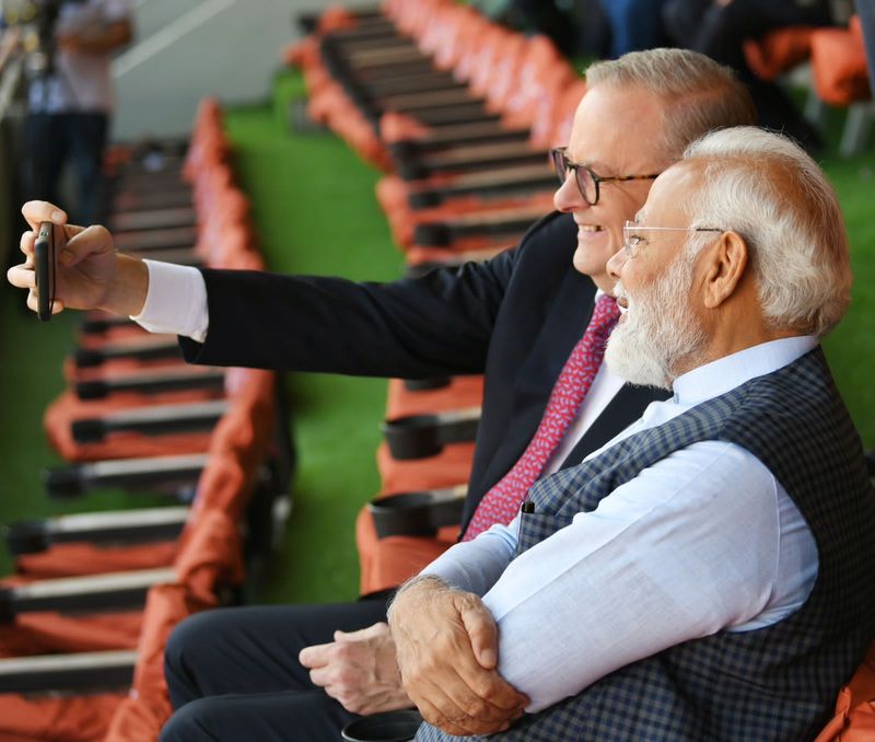 பிரதமர் மோடி மற்றும் அந்தோணி அல்பானீஸ் இருவரும் முதல் 30 நிமிட ஆட்டத்தை பார்த்தனர், ஆஸ்திரேலியா முதலில் பேட்டிங் செய்ய வந்தது, பின்னர் அவர்கள் மைதானத்தை விட்டு வெளியேறினர். இதற்கிடையில் அல்பானிஸ் பின்னர் பிரதமர் மோடியுடன் ஒரு செல்ஃபி பகிர்ந்து கொண்டார், இது சமூக ஊடகங்களில் வைரலானது என்பது குறிப்பிடத்தக்கது.