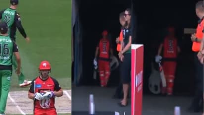 இந்த போட்டியில் ரெனெகேட்ஸ் அணியின் பேட்டிங்கின் போது அந்த அணியின் கேப்டன் ஃபின்ச் துரதிர்ஷ்டவசமாக அவுட்டாகினார். ஃபின்ச்சும் ஒயிட்டும் களத்தில் இருந்தபோது, ஒயிட் அடித்த பந்து பவுலரின் கையில் பட்டு ஸ்டம்பில் அடித்தது. அப்போது ரன் ஓடுவதற்காக கிரீஸை விட்டு சற்று முன்னே சென்றிருந்த ஃபின்ச், ரன் அவுட்டாகி வெளியேறினார். முதல் 2 விக்கெட்டுகள் சொற்ப ரன்களில் ஆட்டமிழக்க, தானும் 13 ரன்களில், அதுவும் இப்படி அவுட்டானதால் கடுப்பானார் ஃபின்ச்.