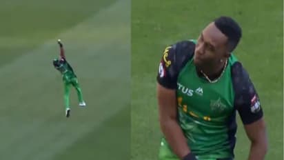பிக்பேஷ் லீக்கில் மெல்போர்ன் ஸ்டார்ஸ் அணிக்கு ஆடிவரும் பிராவோ, மெல்போர்ன் ரெனெகேட்ஸ் அணிக்கு எதிராக ஒரு அபாரமான கேட்ச்சை பிடித்து மிரட்டியுள்ளார்.