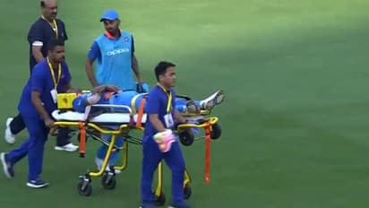 இதைப் பார்த்த இந்திய வீரர்கள் அதிர்ச்சியில் உறைந்தனர். அதன்பின், அங்கு ஸ்டெரச்சர் கொண்டுவரப்பட்டு, அழைத்துச் செல்லப்பட்டார். அவர் ஸ்ட்ரெச்சரில் அழைத்துச் செல்லப்படும்போது இருந்த நிலை, இந்திய ரசிகர்களை சிறிது கலக்கத்திற்கு உள்ளாக்கி உள்ளது.