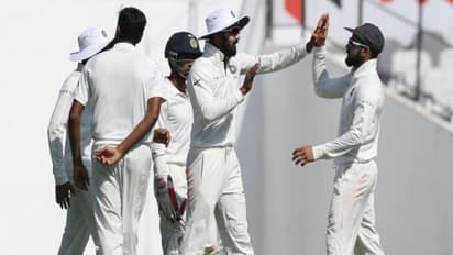 இந்திய அணி தரப்பில் அஸ்வின் 4 விக்கெட்டுகளையும் இஷாந்த் சர்மா, உமேஷ் யாதவ், ஜடேஜா ஆகியோர் தலா 2 விக்கெட்டுகளை வீழ்த்தினர். இந்த போட்டியில் 4 விக்கெட்டுகளை வீழ்த்திய அஸ்வின், குறைந்த போட்டிகளில் 300 விக்கெட்டுகளை வீழ்த்திய வீரர் என்ற சாதனையை படைத்துள்ளார்.