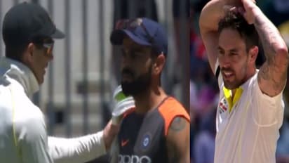 இந்நிலையில், போட்டி முடிந்ததும் இருவரும் கை கொடுத்து கொள்ளும்போது ஆஸ்திரேலிய கேப்டன் டிம் பெய்ன் கோலியை பார்த்து கை கொடுத்து அவருக்கு தட்டி கொடுக்கிறார். ஆனால் கோலியோ முறைப்புடனும் விரைப்பாகவும் கை கொடுத்தார். கோலியின் இந்த நடவடிக்கையும் சர்ச்சையை ஏற்படுத்தியது.