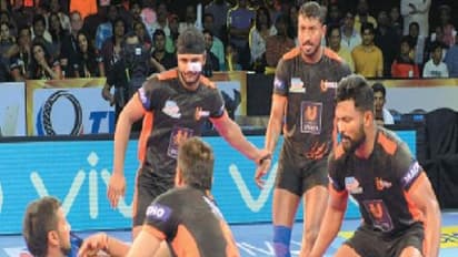 பின்னர் அந்த அணியின் நட்சத்திர ரைடரான காஷிலிங் அடாகே சூப்பர் ரைடு மூலம் மூன்று புள்ளிகளைப் பெற்றார். 30-வது நிமிடத்தில் யு-மும்பா கேப்டன் அனுப் குமார் இரு புள்ளிகளைக் கைப்பற்ற, அந்த அணி 22-20 என்ற கணக்கில் முன்னிலைப் பெற்றது.