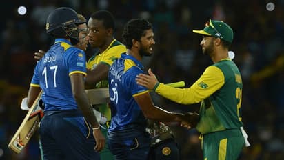 பின்னர் 99 ரன்கள் அடித்தால் வெற்றி என்ற இலக்குடன் இலங்கை அணி களமிறங்கியது. நாங்களும் சலைத்தவர்கள் இல்லை என்று தென்ஆப்பிரிக்கா வேகத்தில் அசத்தியது. இறுதியில் இலங்கை 16.4 ஓவரில் 7 விக்கெட் இழப்பிற்கு 99 ரன்கள் எடுத்து வெற்றி பெற்றது. இந்த அணியில் அதிகபட்சமாக சண்டிமல் 36, டி சில்வா 31 ரன்கள் எடுத்தனர்.