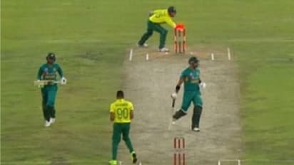 விக்கெட் கீப்பர் கிளாசன், ரன் அவுட் செய்தார். இருவரில் யார் அவுட் என்ற சந்தேகம் வந்தது. இதை ரிவியூ செய்து பார்த்த மூன்றாவது அம்பயரே குழம்பிப்போனார். இதையடுத்து இருவரில் யார் முன்னால் இருக்கிறார் என்பதை அறிய ஒரு கோடு போட்டு ஆய்வு செய்தார். அப்போது மாலிக் டலட்டிற்கு பின்னால் இருந்தது கண்டறியப்பட்டு மாலிக்கிற்கு அவுட் கொடுக்கப்பட்டது. இந்த ரன் அவுட்டில் முடிவெடுக்க அதிக நேரம் எடுத்து கொள்ளப்பட்டது. 2 கிரீஸ் போதாது என்று மூன்றாவதாக ஒரு கிரீஸ் போட்டு இருவரில் யார் அவுட் என ஆய்வு செய்யப்பட்டது.