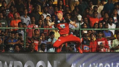 இந்த ஆட்டத்தில், ஐதராபாத் அணி தொடக்க வீரர் அலெக்ஸ் ஹால்ஸ் அடித்த பந்தை எல்லை கோர்ட்டில் நின்ற டிவில்லியர்ஸ் பாய்ந்து ஒரு கையில் கேட்ச் பிடித்து பிரமிக்க வைத்தார்.
