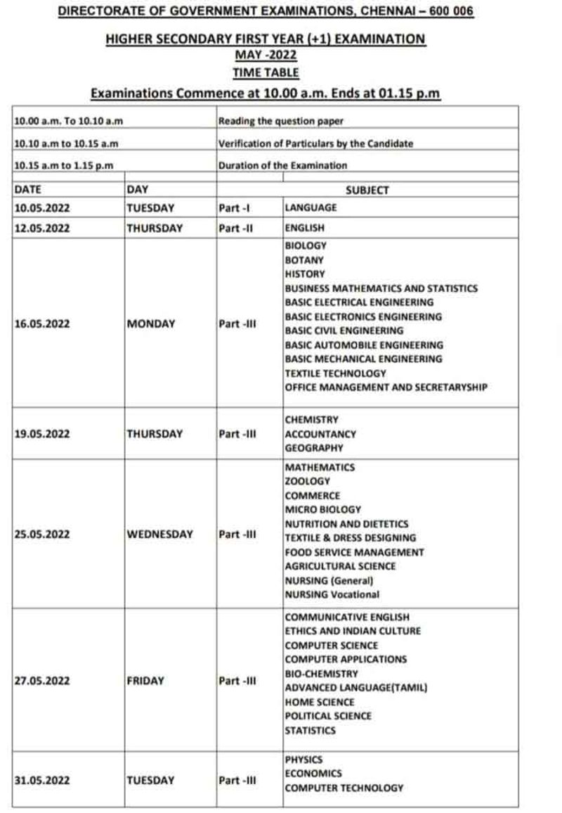 11ம் வகுப்பு பொதுத்தேர்வு கால அட்டவணை விவரம்