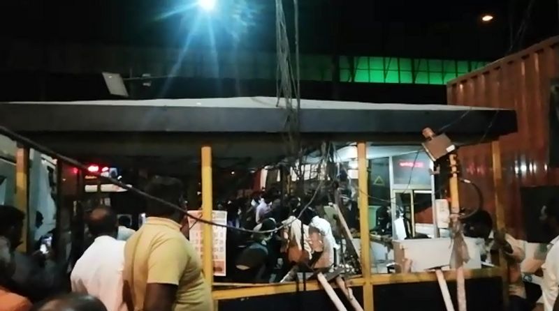 இதில் ஆத்திரமடைந்த ஓட்டுநர், பேருந்தை சுங்கச்சாவடியை மறித்து நிறுத்தினார். இதனால் வாகனங்கள் அணி வகுத்து நின்றன. இதனிடையே அந்த வழியாக வந்த அரசு பேருந்துகளின் ஓட்டுனர்கள் மற்றும் நடத்துனர்கள் திரண்டு வந்து தாக்கப்பட்ட பேருந்து ஓட்டுனருக்கு ஆதரவாக போராட்டம் நடத்தினர். அங்கிருந்த சுங்கச்சாவடி அறைகளை அடித்து நொறுக்கினர். இதில் கணினி உட்பட அங்கிருந்த அனைத்து பொருட்களும் சேதமடைந்தன. பின் போலீசார் வந்து நிலையை கட்டுப்படுத்தினர்.