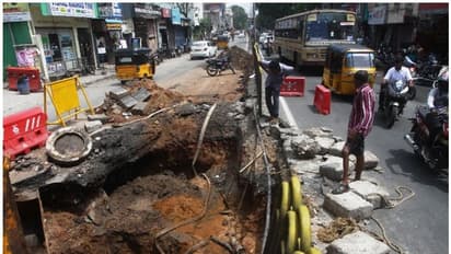 2வது நாளாக சாலையில் ஏற்பட்ட பள்ளத்தை சீரமைக்கும் பணி நடந்ததால் தண்டையார்பேட்டை, திருவொற்றியூர், ராயபுரம் ஆகிய பகுதிகளில் இருந்து பாரிமுனை நோக்கி செல்லும் வாகனங்கள் ராயபுரம் மேற்கு மாதா கோயில் தெரு வழியாக மாற்றிவிடப்பட்டது.