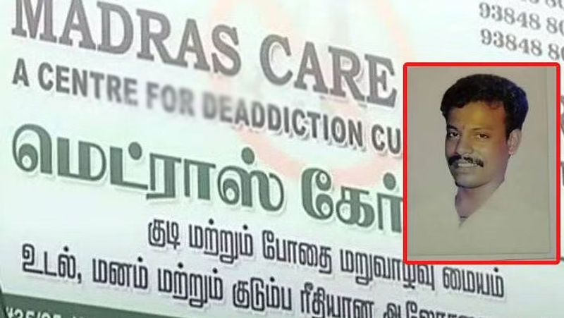 சென்னை இராயப்பேட்டை சேர்ந்தவர் கலா (47) கணவர் ராஜு என்பவர் குடிபோதைக்கு அடிமையானவர் ஆவார். இதனால் குடும்பத்தில் கணவன் மனைவிக்கு இடையே அடிக்கடி பிரச்சினை ஏற்பட்டு வந்தது. இந்நிலையில் சுப நிகழ்ச்சி ஒன்றுக்கு மனைவியுடன் சென்ற ராஜு அங்கு மது அருந்திய நிலையில் மீண்டும் நேற்று மனைவி கலாவுடன் வாக்குவாதத்தில் ஈடுபட்டு தகராறு செய்தார். அதனைத் தொடர்ந்து மனைவி கலா மற்றும் அவரது குடும்பத்தினர் இணைந்து ராயப்பேட்டையில் உள்ள " மெட்ராஸ் கேர் சென்டர் " என்ற போதை மறுவாழ்வு மையத்திற்கு தகவல் தெரிவித்தனர்.