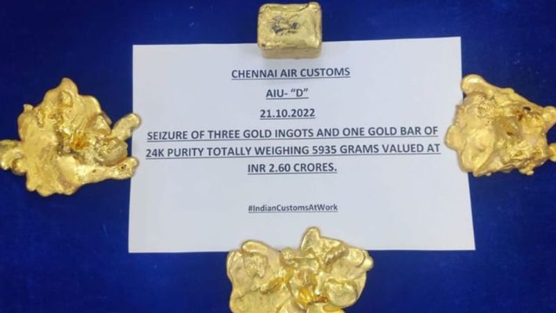 சென்னை உள்நாட்டு விமான நிலையத்தில் சுங்கத்துறையினர் நடத்திய சோதனையில் ரூ. 2.60 கோடி மதிப்புடைய 5.935 கிலோ தங்கம் கைப்பற்றப்பட்டது. மூன்று மும்பை ஆசாமிகள் கைது செய்யப்பட்டுள்ளனர். மேலும் ஒரு கடத்தல் ஆசாமியை தேடி வருகின்றனர்.