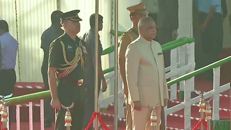 இதைத்தொடர்ந்து, ஆளுநர் விழா நடக்கும் இடத்திற்கு வருகை தந்தார். முதல்வர் எடப்பாடி பழனிசாமி, துணை முதல்வர் ஓ.பன்னீர் செல்வம் மற்றும் தலைமைச் செயலாளர் ஆகியோர் ஆளுநரை வரவேற்றனர். இதையடுத்து, ஆளுநர் பன்வாரிலால் புரோகித் தேசியக் கொடியை ஏற்றிவைத்தார். அதன்பின், அவர் முப்படை வீரர்களின் அணிவகுப்பு மரியாதையை ஏற்றுக்கொண்டார். பல்வேறு துறைகளின் சார்பில் இடம்பெற்றுள்ள கண்காட்சி அணிவகுப்பையும் அவர் பார்வையிட்டு வருகிறார்.