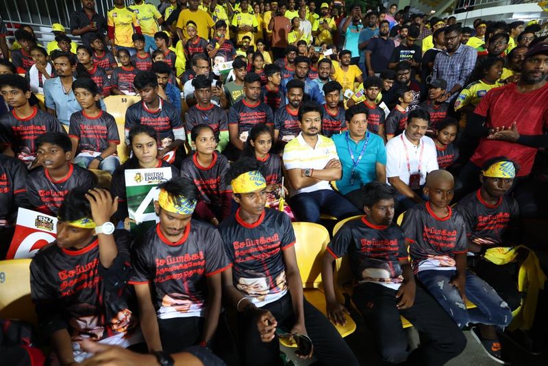 அந்த வகையில் வட்டம் 119-ஐ சேர்ந்த 150 சிறுவர் - சிறுமியருக்கு ஐபிஎல் டிக்கெட்டுகளை வாங்கித் தந்த உதயநிதி, அவர்களுடன் இன்று (மே.10) நடைபெற்ற சென்னை சூப்பர் கிங்ஸ் Vs டெல்லி கேப்பிட்டல்ஸ் இடையேயான ஐபிஎல் போட்டியை கண்டு மகிழ்ந்தார். அவருடன் சிறுவர் சிறுமியரும் ஐபிஎல் கிரிக்கெட் போட்டியை கண்டு ரசித்தனர்.