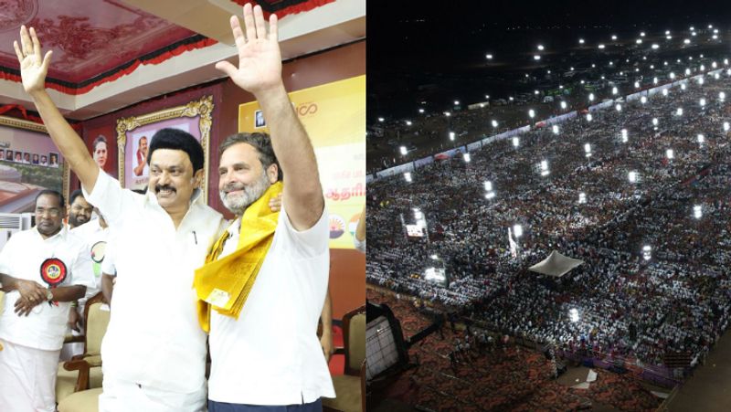 அடுத்து பேசிய காங்கிரஸ் தலைவர் ராகுல் காந்தி, "என் அண்ணன் மு.க. ஸ்டாலின். நான் வேறு எந்த அரசியல்வாதிகளையும் இப்படி அழைப்பதில்லை என்று கூறினார். தமிழ்நாட்டு மக்களிடம் நான் கொண்டிருக்கிற உறவு அரசியல் உறவல்ல. அதுவொரு குடும்ப உறவு; அவர்களை நான் ஆத்மார்த்தமாக நேசிக்கின்ற உறவு ஆகும்.