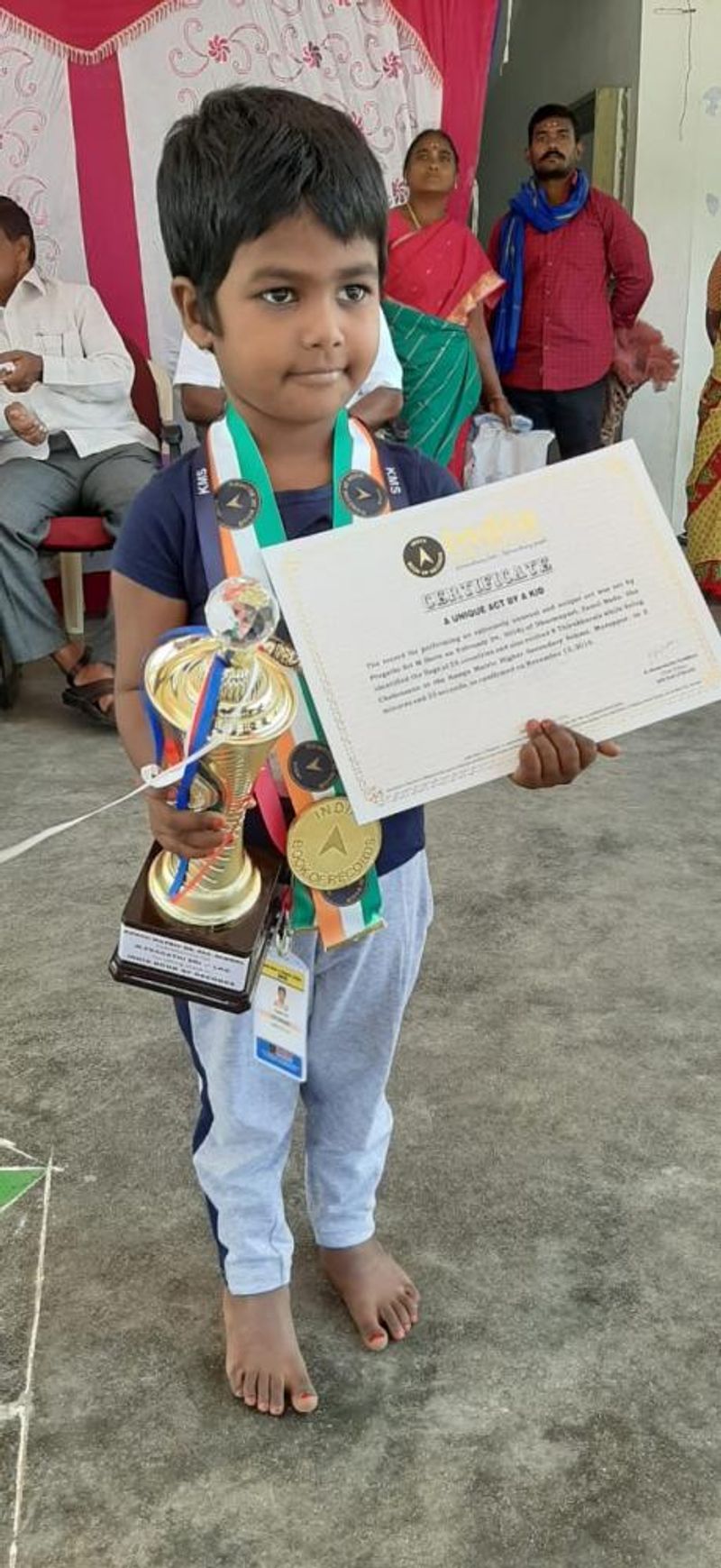 யோகா காலையில் உலக சாதனை புரிய வேண்டும் என்பதை சிறு வயதில் இருந்தே அவரது லட்சியமாக பெற்றோர் சொல்லி வளர்த்து வருகின்றனர். இதனிடையே யோகாசனம் செய்து கொண்டே திருக்குறளை ஒப்புவிக்கும் இந்த சிறுமி, உலக நாடுகளின் கொடிகளையும் தெளிவாக கூறுகிறார். பிரகதிஸ்ரீயின் இந்த திறமையை பாராட்டி இந்திய சாதனை புத்தகம் விருது வழங்கி கௌரவித்துள்ளது.