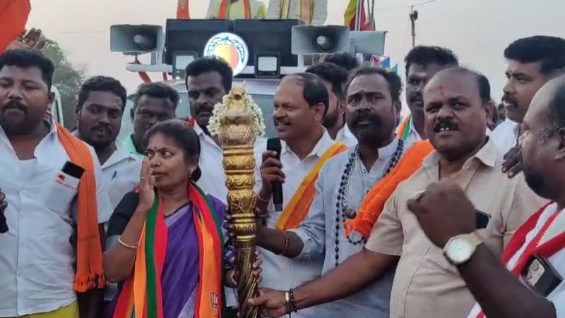 நாடாளுமன்ற தேர்தலுக்கு இன்னும் 9 நாட்களே உள்ள நிலையில் தமிழக அரசியல் களம் பரபரப்பை ஏற்படுத்தியுள்ளது. . வேட்பாளர்கள் வித்தியாசமான முறையில் வாக்காளர்களை நேரில் சந்தித்து வாக்கு சேகரித்து வருவதோடு கூட்டணி கட்சி தலைவர்களும் சூறாவளி பிரச்சாரத்தில் ஈடுபட்டு வருகின்றனர். அந்த வகையில் திண்டுக்கல் மக்களவைத் தொகுதியில் தேசிய ஜனநாயக கூட்டணி கட்சி சார்பில் போட்டியிடும் பாமக வேட்பாளர் கிழக்கு திலபாமாவிற்கு ஆதரவாக இந்து மக்கள் கட்சி தலைவர் அர்ஜுன் சம்பத் வாக்கு சேகரிப்பில் ஈடுபட்டார்.